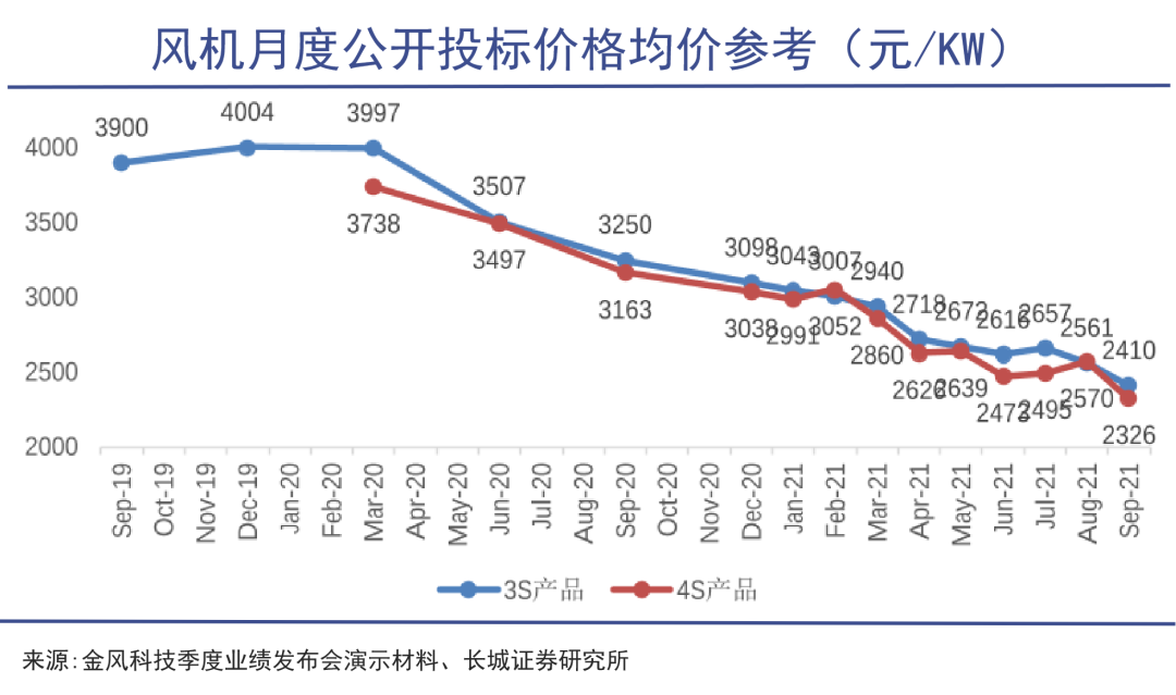 2020年12月,華能集團(tuán)“北方上都平價(jià)大基地項(xiàng)目”開標(biāo),三一重能報(bào)出了3101元/KW的價(jià)格。剔除塔筒成本后,單機(jī)單價(jià)僅為2600元/KW。被認(rèn)為是打響價(jià)格戰(zhàn)的“第一槍”。