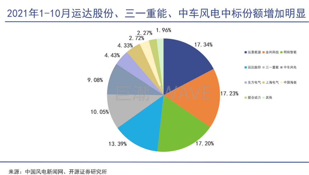 可以說,三一重能趕上了政策紅利最后一班車。伍德麥肯茲發(fā)布報(bào)告稱,2021年上半年,按照風(fēng)機(jī)訂單總?cè)萘颗琶熊囷L(fēng)電和三一重能趕超運(yùn)達(dá)風(fēng)電與上海電氣,首次躋身前五。