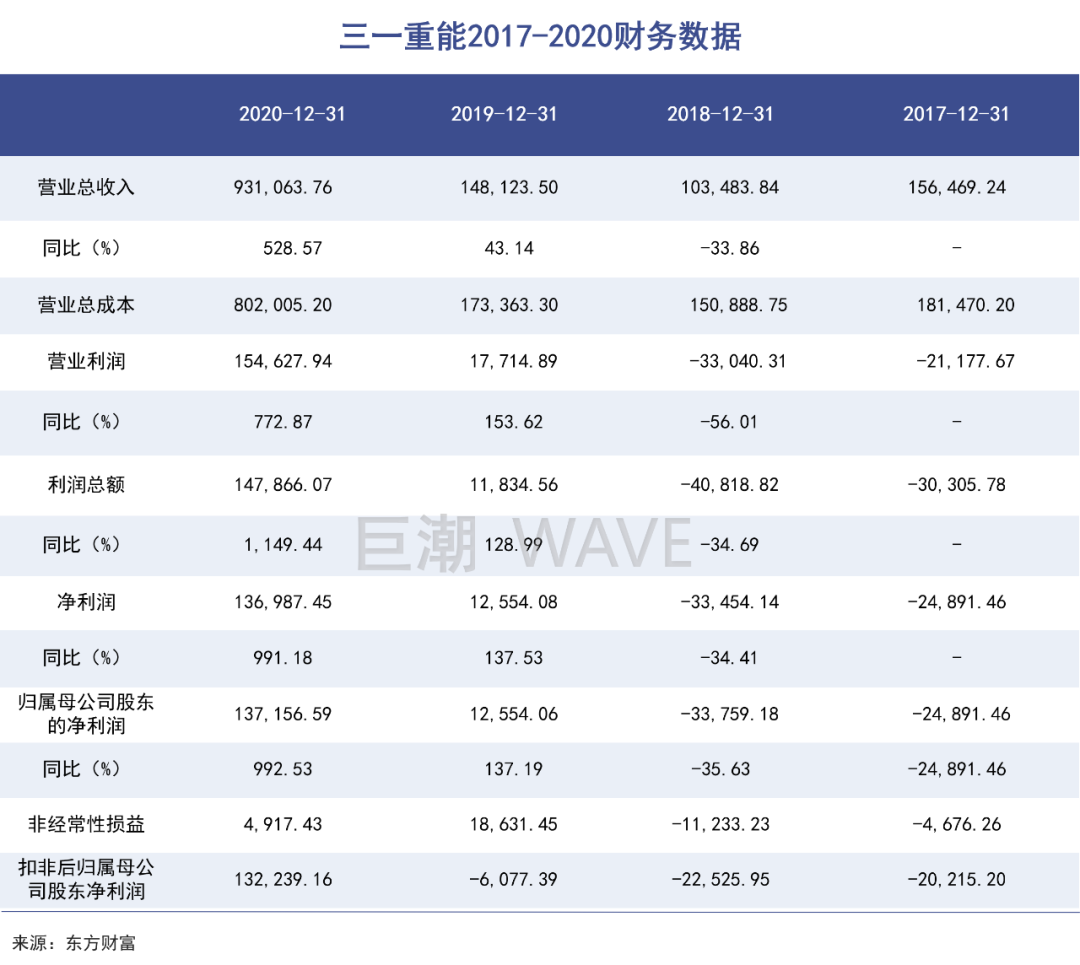 2017-2018年還連續(xù)虧損的三一重能,在2020年實(shí)現(xiàn)絕地反擊。