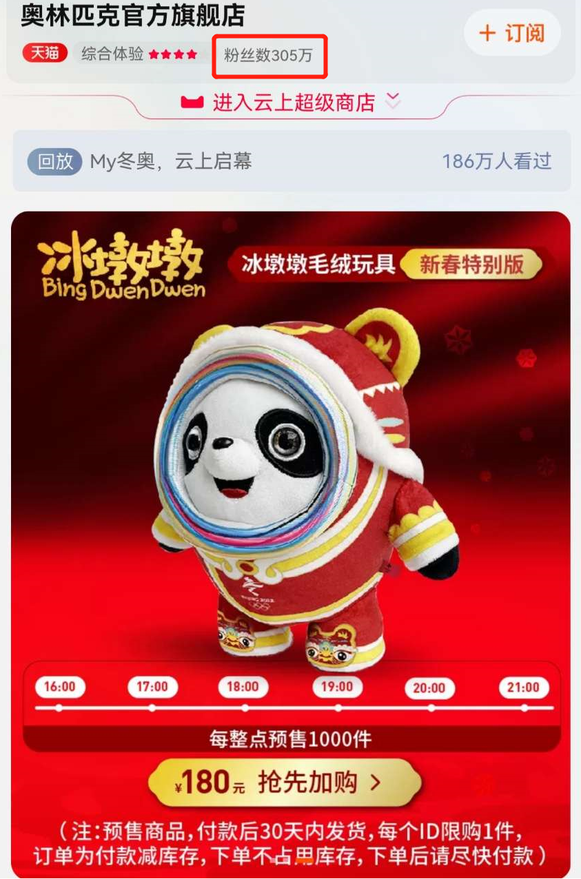 2月4日以來,奧林匹克官方旗艦店連續(xù)多次進(jìn)行冰墩墩徽章、鑰匙扣等產(chǎn)品的補(bǔ)貨,上線便被秒空。2月9日,奧林匹克官方旗艦店上線了“新春特別版”冰墩墩絨毛玩具,自下午4點(diǎn)開始每個整點(diǎn)1000件放量預(yù)售,這引發(fā)大批網(wǎng)友進(jìn)入店鋪秒殺。