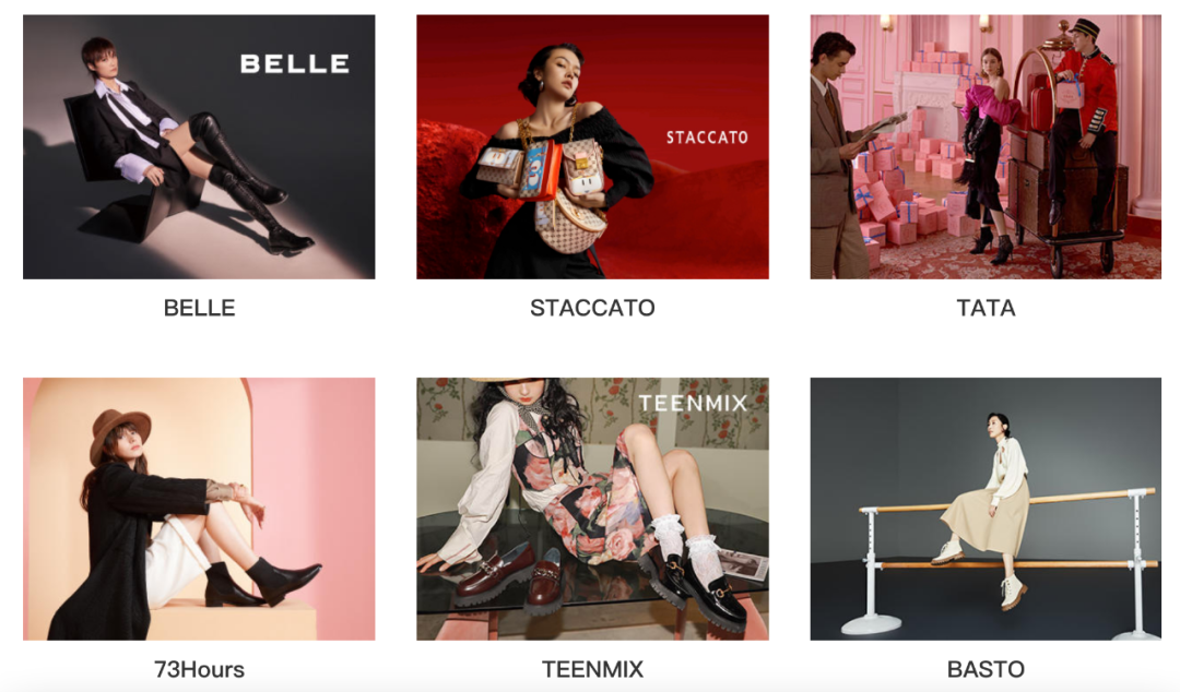 百麗旗下部分鞋類(lèi)品牌,圖/百麗官網(wǎng)