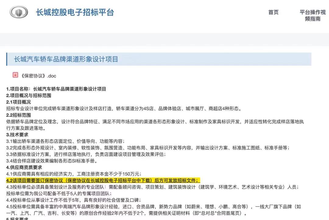 界面新聞?dòng)浾咦⒁獾?,在長城控股電子招標(biāo)平臺(tái)上發(fā)布的《BC品牌2022年區(qū)域活動(dòng)執(zhí)行公司招標(biāo)項(xiàng)目》顯示,長城汽車將發(fā)布一個(gè)全新轎車品牌,內(nèi)部代號(hào)為BC。