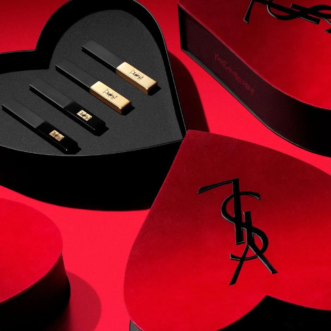 YSL同樣是以絲絨為主題,用小金條做出了3種搭配禮盒:“小金條”家族禮盒、“香色”禮盒、“至愛”禮盒。均以直白的紅色絲絨愛心禮盒作為包裝,3款禮盒中,小金條2支裝銷量最高,已超過2萬+套。此外,還有TOM FORD、ARMANI、VAlENTINO、JO MALONE等品牌都選擇了紅色+愛心的包裝設(shè)計(jì),以凸顯濃厚的節(jié)日氛圍。