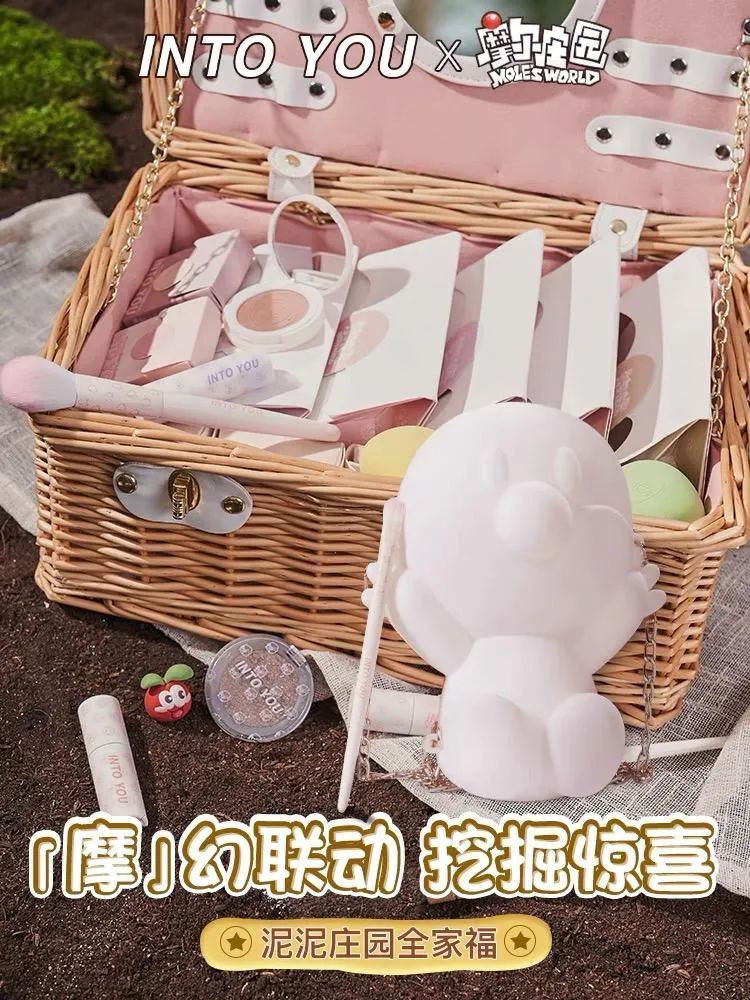 另一位“網(wǎng)紅”選手INTO YOU也選擇了聯(lián)名路線,推出了摩爾莊園聯(lián)名“泥泥莊園”禮盒,不過在一眾大牌口紅套裝中,競爭顯得乏力。