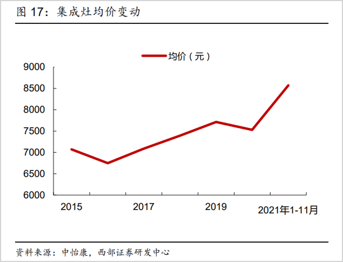據(jù)中怡康統(tǒng)計(jì),2020年,國(guó)內(nèi)集成灶均價(jià)為7530元,2021年1-11月均價(jià)為8571元,已連續(xù)5年提升。