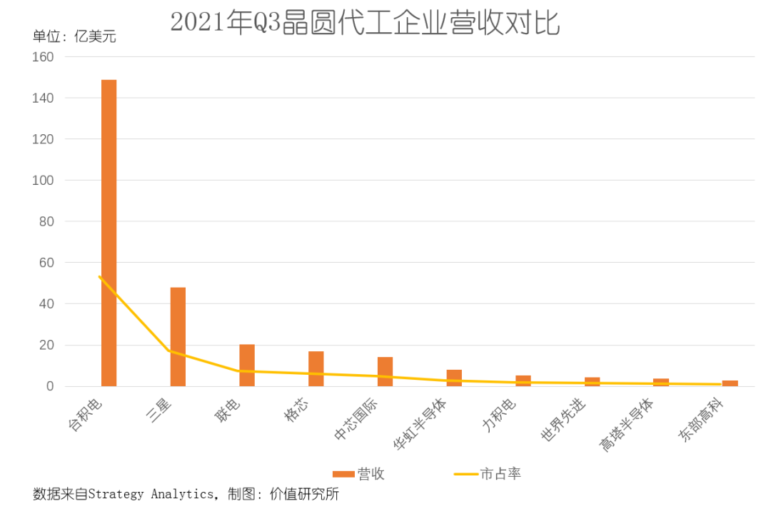 從產(chǎn)能來看,臺積電和三星基本獨一檔,和后面的競爭對手拉開了很大差距。