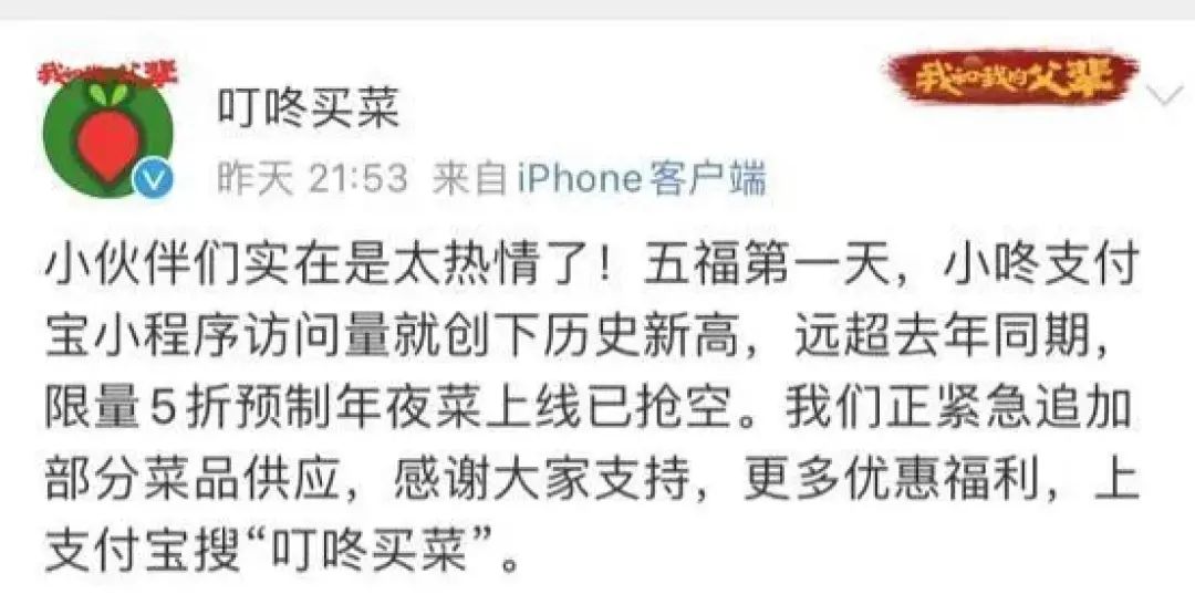 五福作為開放策略變革后的首個(gè)試驗(yàn)場(chǎng),確實(shí)奏效。從Tech星球的觀察來看,商家頗為買單,吆喝領(lǐng)福卡成為節(jié)前營(yíng)銷常態(tài),叮咚買菜在支付寶小程序上推出“五福年夜飯”及“虎系菜”等春節(jié)新商品,引導(dǎo)用戶通過搜索自己的小程序集???,并通過生活號(hào)直播宣傳,7天賣出了300萬份預(yù)制菜,客單價(jià)同比增長(zhǎng)1倍。茶百道則借五福營(yíng)銷新品,發(fā)??ǖ耐瑫r(shí)推送新品嘗新券,用戶領(lǐng)券后可一鍵下單。最終茶百道小程序新用戶增長(zhǎng)近6倍。