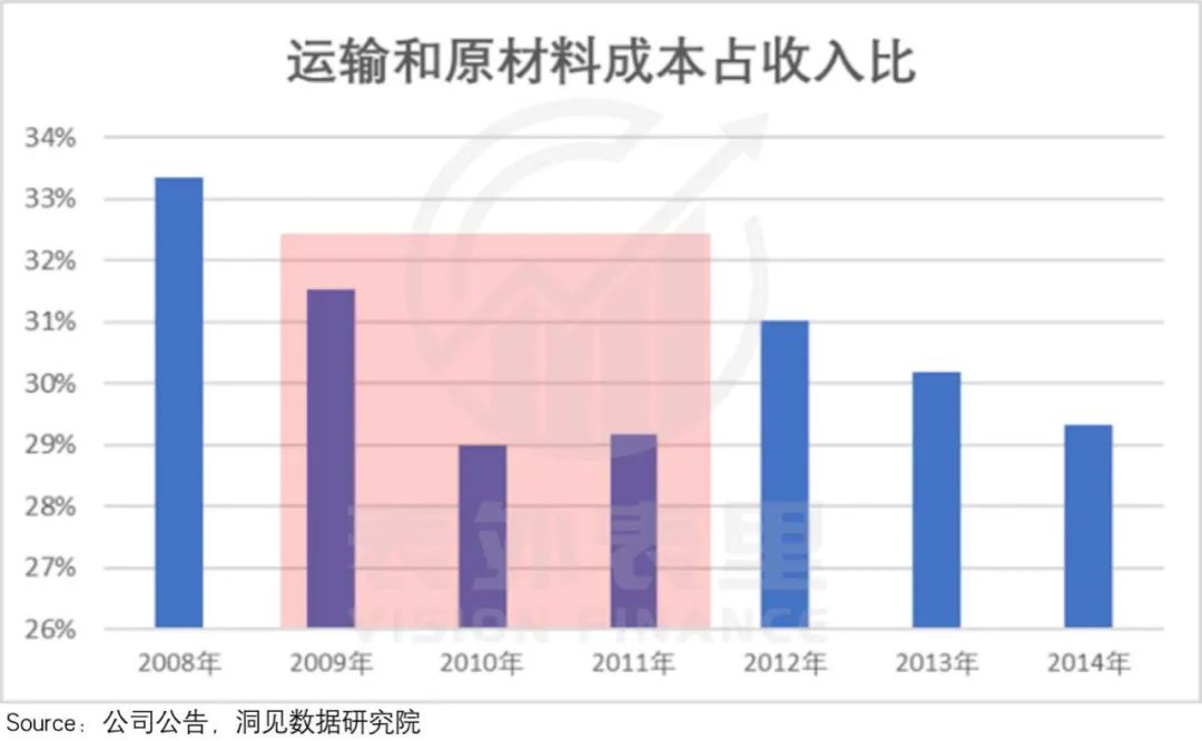 通過革合作伙伴的“命”,2009年開始星巴克的供應(yīng)鏈成本占比,持續(xù)大幅下降。