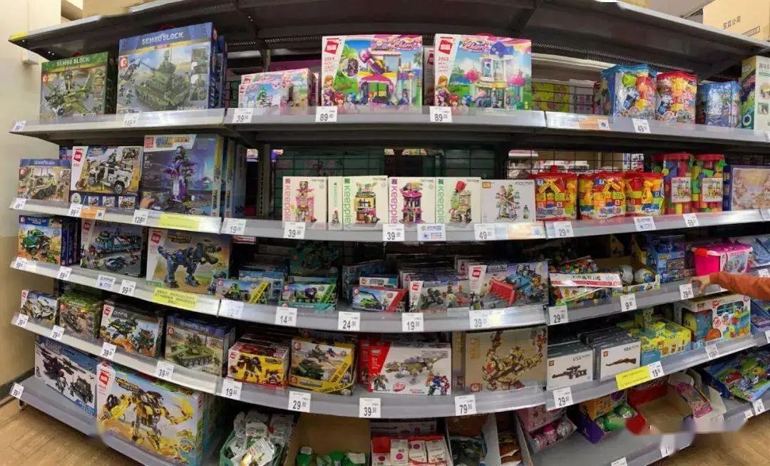 廣州某超市的貨架上,國產(chǎn)積木琳瑯滿目