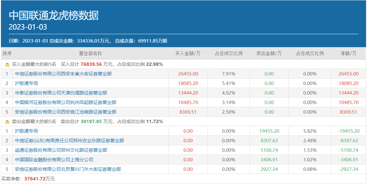 不過,1月3日龍虎榜數(shù)據(jù)顯示,滬股通專用席位在買入中國聯(lián)通1.81億元的同時(shí),也賣出了1.95億元。