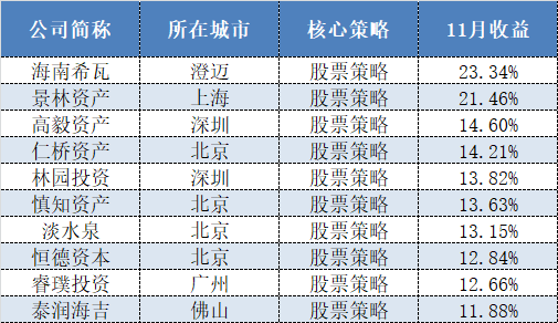 表格:11月百億私募收益排行前十榜單