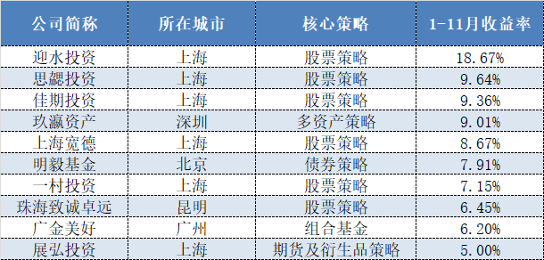 表格:1-11月百億私募收益排行前十榜單