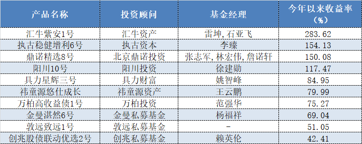 冠軍產(chǎn)品是來自匯牛資產(chǎn)旗下的“匯牛紫安1號”,產(chǎn)品上半年的收益率高達(dá)283.62%,以絕對優(yōu)勢成功奪冠。