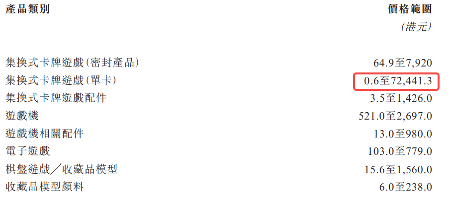 云涌游戲招股書(shū)中披露單卡指導(dǎo)價(jià)格最大有72441.3元的單卡