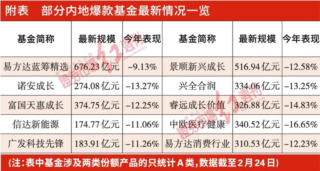 Wind數據顯示,截至2月24日收盤,開年迄今已經有多只主動權益產品凈值下跌幅度超過20%,其中不乏有明星基金經理執(zhí)掌的“爆款”產品,譬如“公募一姐”葛蘭所管理的中歐阿爾法。