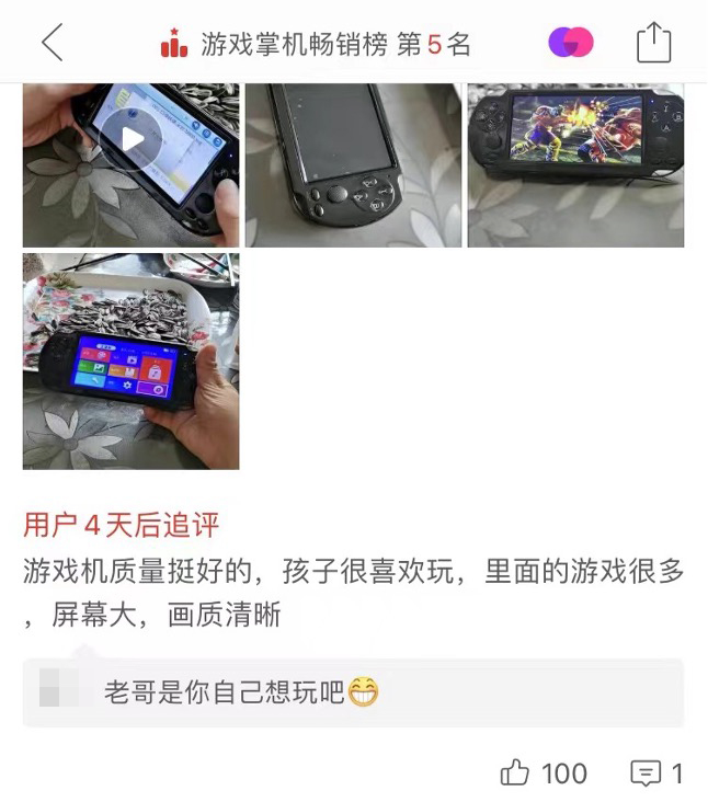 “二手主機(jī)還得破解自己裝游戲,舊掌機(jī)屏幕啊電池啊都不好了。我們這是全新的?!痹撋碳艺f(shuō)道。