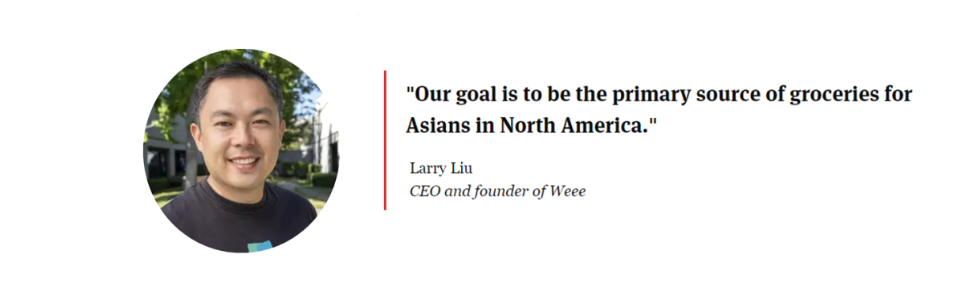 有意思的是,Weee!身上帶著濃厚的中國烙印——三位創(chuàng)始人都是畢業(yè)于上海交大的學生,2015年微信開始在美國華人圈流行,他們從國內(nèi)社交電商大潮受到啟發(fā)成立了Weee!,創(chuàng)辦了華人自己線上生鮮超市。起初,中國的團購模式在美國水土不服,Weee!幾經(jīng)轉(zhuǎn)型,最終成為北美最大的少數(shù)族裔零售和食品電商。