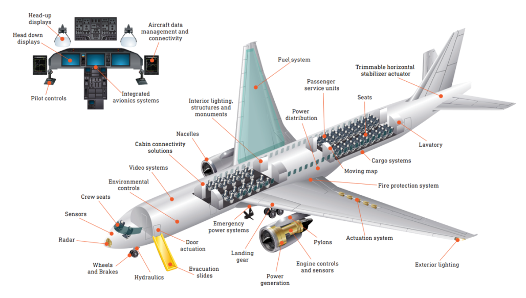 芯片廣泛應(yīng)用于飛機各大系統(tǒng)中,圖片來源:柯林斯