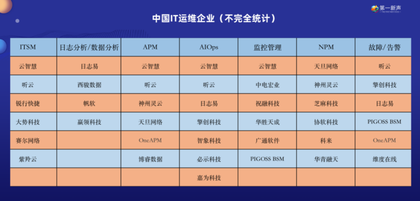 在數(shù)字化轉(zhuǎn)型、云原生的浪潮下,IT運(yùn)維的盤(pán)子會(huì)變得更大,產(chǎn)品市場(chǎng)更是足夠細(xì)分,例如從傳統(tǒng)的基礎(chǔ)設(shè)施運(yùn)維服務(wù)、應(yīng)用系統(tǒng)運(yùn)維服務(wù)、安全管理服務(wù)、網(wǎng)絡(luò)接入服務(wù)、內(nèi)容信息服務(wù)等,到較新的自動(dòng)化、AIOps等。因此,資本、企業(yè)不斷進(jìn)入IT運(yùn)維這個(gè)巨大的角斗場(chǎng)中,他們?nèi)绾胃鶕?jù)自身優(yōu)勢(shì)群雄逐鹿,成為未來(lái)的"王者"?今年獲得E輪1.5億美元的云智慧有希望嗎?