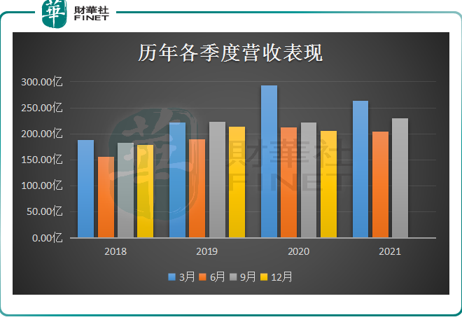 此外,從公司往年各季度經營數(shù)據(jù)表現(xiàn)中亦可看出,第一季度往往是公司實現(xiàn)營收最高的時候,便是在2020年第一季度便達到了292.57億元。