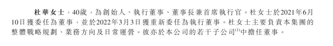 公司創(chuàng)始人杜華擔任執(zhí)行董事、董事長兼首席執(zhí)行官,主要負責整體戰(zhàn)略規(guī)劃、業(yè)務(wù)方向及日常運營。