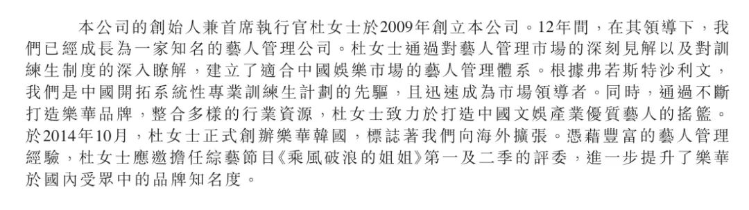 2009年,杜華創(chuàng)辦樂華娛樂,并于2014年成立樂華韓國,開啟海外擴張。此外,招股書還提到杜華曾擔任綜藝節(jié)目《乘風破浪的姐姐》第一季、第二季評委。