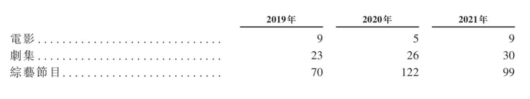 娛樂內(nèi)容活動包括電影、劇集以及綜藝節(jié)目,管理團隊會為公司旗下藝人搭建可參演優(yōu)質(zhì)娛樂內(nèi)容的機會。招股書顯示,2021年,公司簽訂旗下藝人出演電影的合同9份;劇集合同30份;綜藝節(jié)目合同99份。