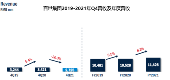 財(cái)報(bào)顯示,百世集團(tuán)第四季度營(yíng)收為人民幣27.25億元,同比下降20.3%。但2021年全年?duì)I收114.26億元,同比增長(zhǎng)8.5%。從下圖來(lái)看,同期的季度增速表現(xiàn)不太樂(lè)觀,但以全年增速來(lái)看,增長(zhǎng)還是較明顯。