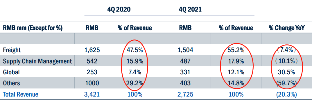 其中,快運(yùn)服務(wù)第四季度營(yíng)收為人民幣15.04億元,與上年同期的人民幣16.25億元相比下降7.4%。