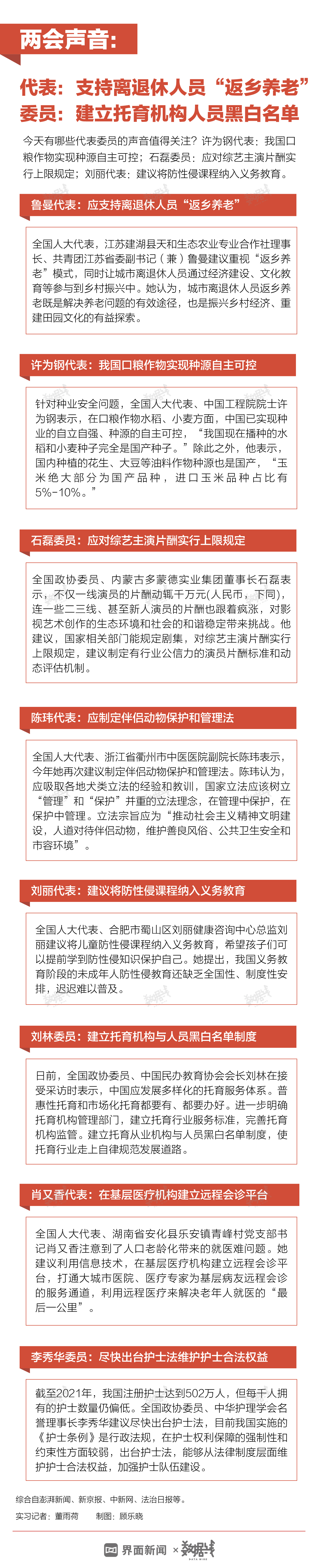 代表:支持離退休人員“返鄉(xiāng)養(yǎng)老”,委員:建立托育機構人員黑白名單 | 兩會聲音