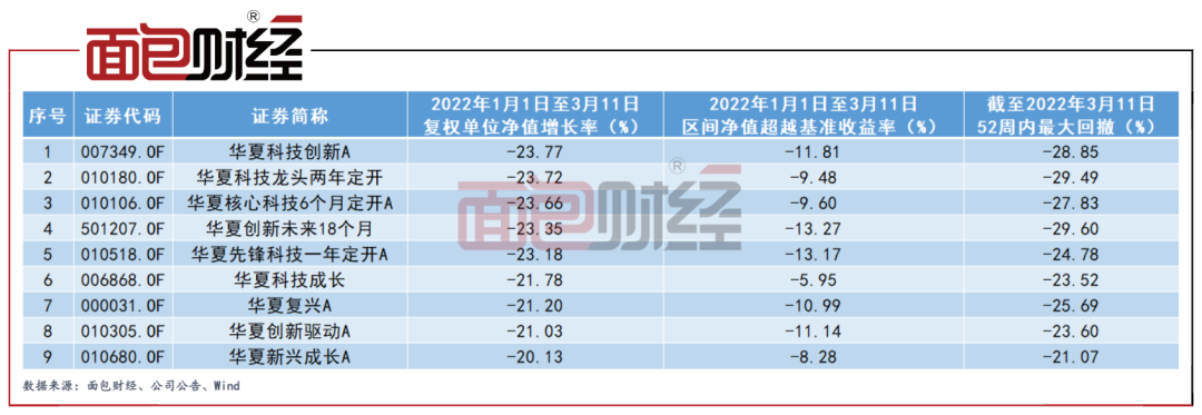 面包財(cái)經(jīng)研究員對(duì)主要新能源汽車概念主題基金產(chǎn)品年內(nèi)回報(bào)統(tǒng)計(jì)發(fā)現(xiàn),2022年初至今(截至3月11日,下同),華夏基金旗下多只產(chǎn)品(初始基金,剔除被動(dòng)指數(shù)型基金,下同)表現(xiàn)欠佳,復(fù)權(quán)單位凈值下跌明顯,其中有9只產(chǎn)品年內(nèi)復(fù)權(quán)單位凈值跌幅超20%。
