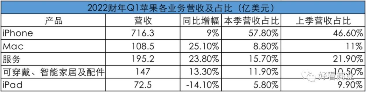 隨后,蘋果做出了一個(gè)重要的決定,就是通過削減iPad的產(chǎn)量,將代工廠和員工調(diào)配至iPhone13。根據(jù)2022 Q1財(cái)報(bào),iPad營收為72.5億元,本季營收占比5.8% ,同比下降14.10%。