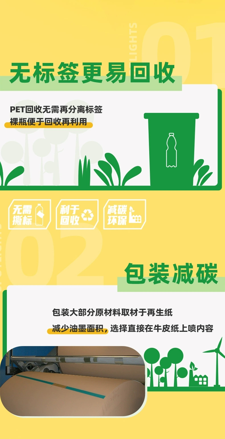 一般來(lái)說(shuō),包裝標(biāo)簽所用的多為PVC材質(zhì),而在回收PET瓶的過(guò)程中,往往會(huì)面臨對(duì)PVC標(biāo)簽進(jìn)行分揀的任務(wù)。無(wú)包裝設(shè)計(jì)可以大大優(yōu)化回收工序,從而提高效率。