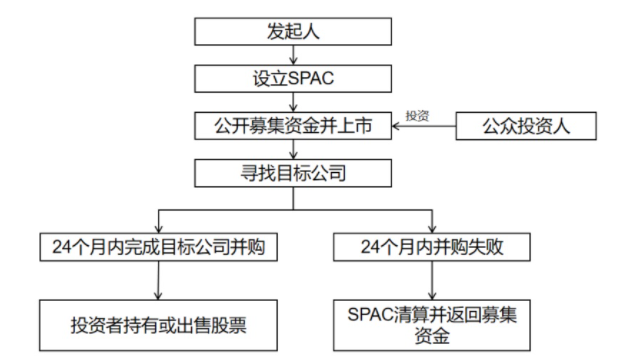 簡(jiǎn)單來說,SPAC是一個(gè)殼公司,設(shè)立它的目的在于上市后通過增發(fā)股票從投資機(jī)構(gòu)和散戶投資者那里募集資金,去收購(gòu)一家具估值增長(zhǎng)潛力但離上市要求還有一定距離的私營(yíng)企業(yè)(通常為中小型創(chuàng)業(yè)公司),即SPAC并購(gòu)交易,從而使該私營(yíng)企業(yè)迅速實(shí)現(xiàn)上市,而SPAC的發(fā)起人及投資人也將得到一部分股權(quán)作為回報(bào),既可以賣出股權(quán)落袋為安,也可以繼續(xù)持有待股價(jià)上漲獲得更高的投資回報(bào)。