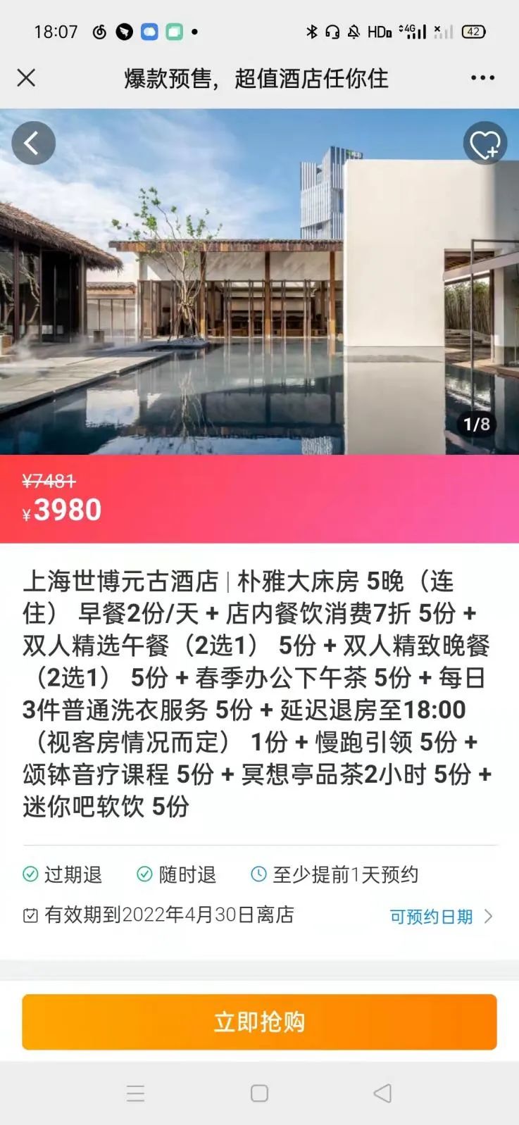 另外的酒店服務(wù)則雖然提供一定程度的學生監(jiān)督服務(wù),但其活動設(shè)置更傾向于照顧身心疲憊的“大人們”而非上課的學生。在上海世博元古酒店的預(yù)定界面上,寫著提供“網(wǎng)課陪護”“慢跑引領(lǐng)”“頌缽音療”“冥想廳品茶”和各類餐飲優(yōu)惠。