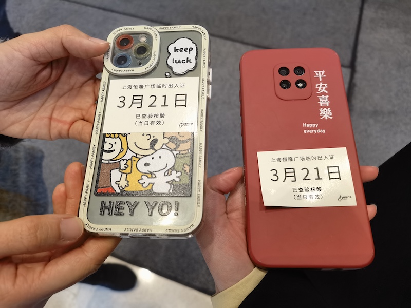 “有了這張證,我們出入樓宇會(huì)更方便,比如中午出去吃個(gè)飯就不用再出示檢測(cè)報(bào)告了。”白領(lǐng)胡小姐和同事兩人將剛拿到的臨時(shí)出入證,貼在了手機(jī)背面,表示每次出門只要帶著手機(jī)就不會(huì)忘帶出入證了。