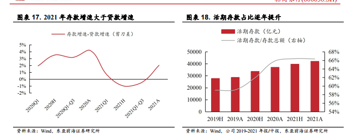 年報(bào)顯示,2021年招行客戶活期存款貢獻(xiàn)最大增長(zhǎng)。客戶存款余額5.9萬(wàn)億元,比2020年末增加7047億元,主要是低成本核心存款增長(zhǎng)拉動(dòng)。核心存款日均余額5萬(wàn)億,較上年增加18.35%?;钇诖婵钊站囝~3.7萬(wàn)億元,較上年增長(zhǎng)18.92%。