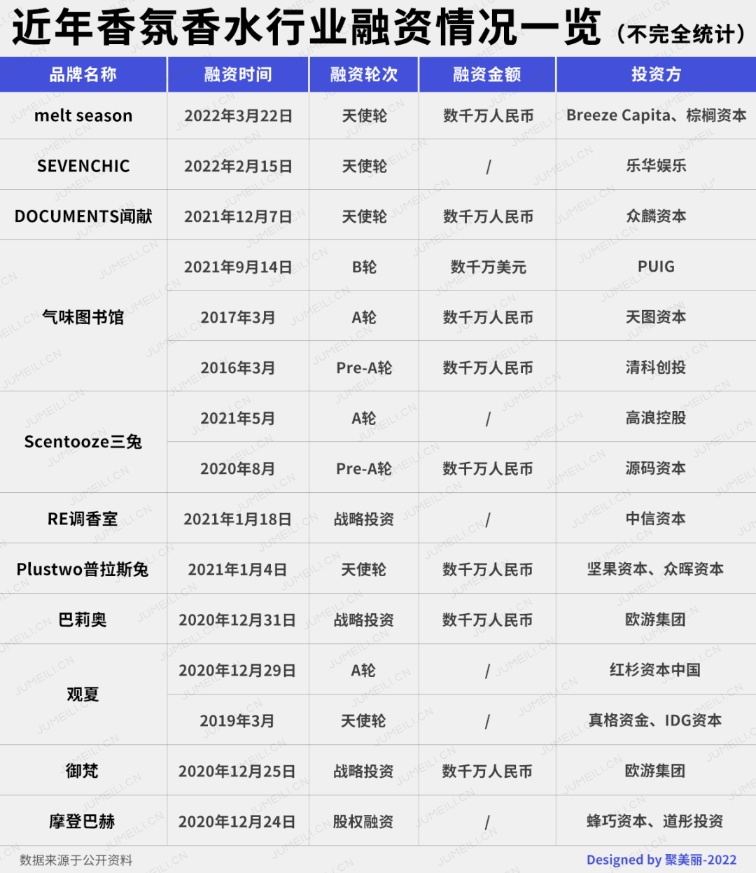 企查查數(shù)據(jù)顯示,自2017年以來,中國香氛企業(yè)注冊(cè)量顯著增長,目前相關(guān)企業(yè)注冊(cè)量已超過2000家。也有不少品牌獲得了資本市場(chǎng)的青睞。