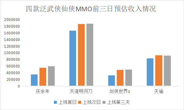 騰訊《天刀》前三天平均預(yù)估收入可達(dá)180萬(wàn)美元,但《慶余年》前三天平均預(yù)估收入約為50萬(wàn)美元,不足《天刀》收入的1/3,也略低于《天諭》。