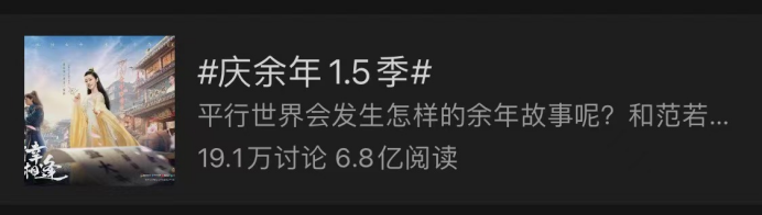 項(xiàng)目組借助目標(biāo)用戶(hù)對(duì)電視劇《慶余年》的期盼,以1.5季作為噱頭吸引用戶(hù)對(duì)此進(jìn)行持續(xù)的關(guān)注,并且以番外劇目吸引用戶(hù),目前該話(huà)題閱讀量已經(jīng)取得超過(guò)6.8億次閱讀和19.1萬(wàn)條評(píng)論。即使明眼人都清楚,大量的閱讀數(shù)并不是奔著游戲而來(lái)的,但背后產(chǎn)生的流量曝光卻是手游項(xiàng)目組所需要的。