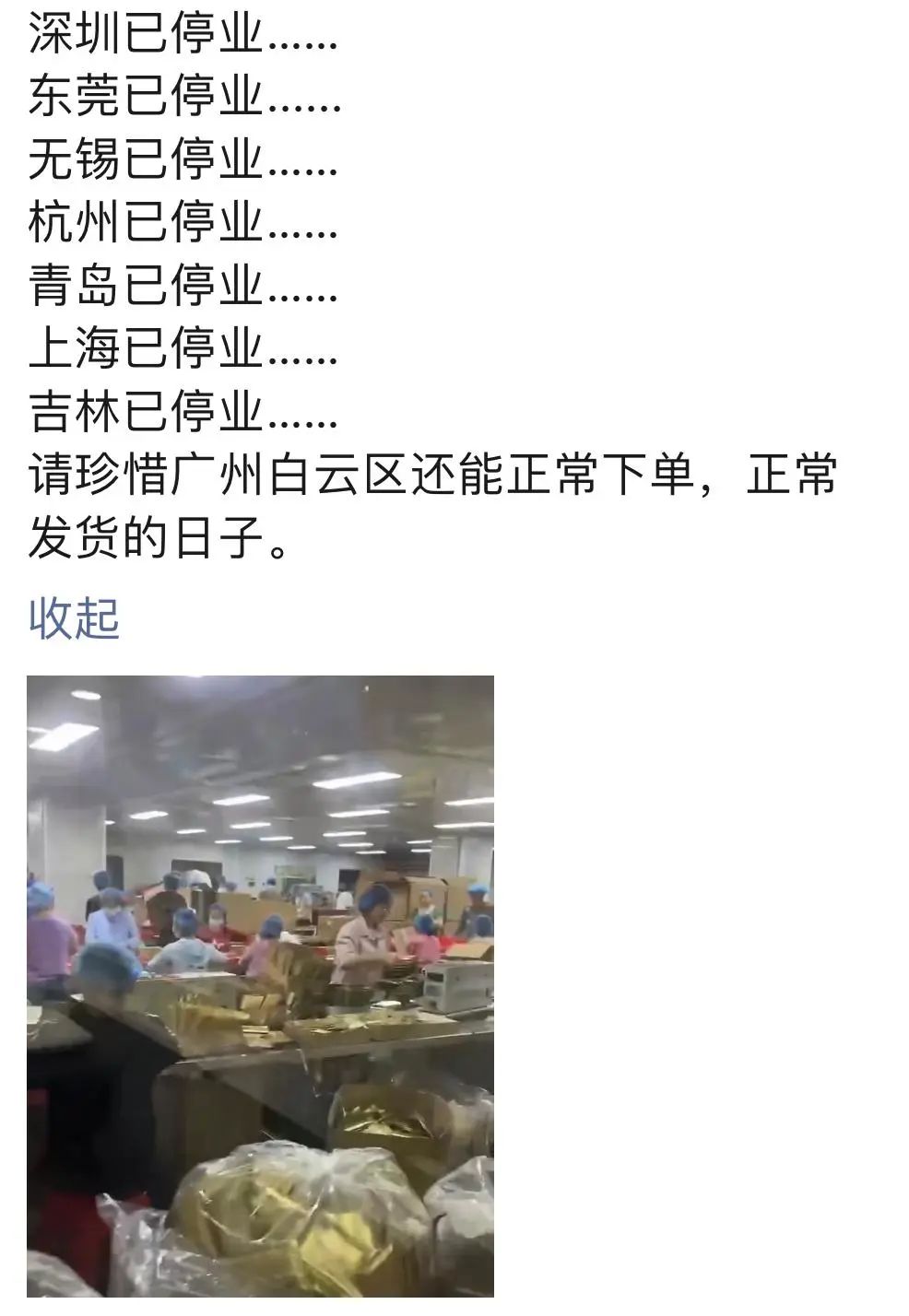 前段時間,疫情突發(fā)時,就有開化妝品店的朋友向C2CC傳媒記者透露,因疫情管控,倉庫所在區(qū)域進(jìn)出港場地封閉管理4天,停止生產(chǎn),快件無法攬收,等通知復(fù)工復(fù)產(chǎn),預(yù)計4月開始可以正常發(fā)貨。
