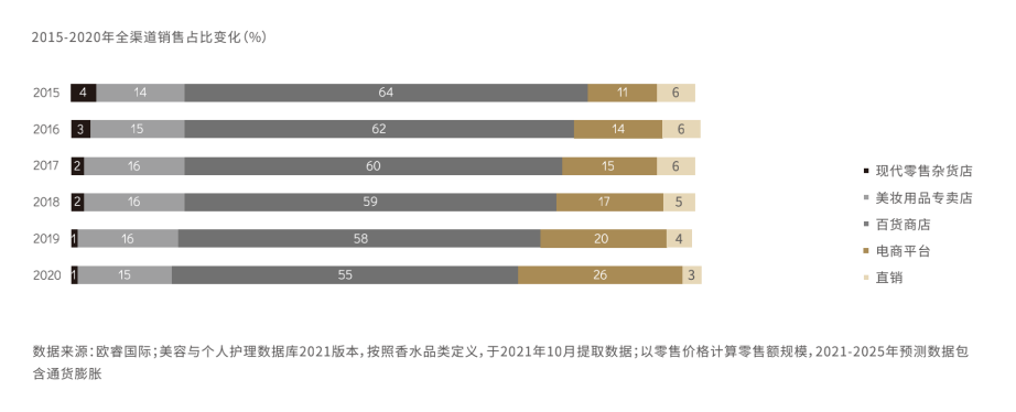 除了消費趨勢的改變,導(dǎo)致中國高端香水市場井噴的另一個重要原因是渠道變遷。