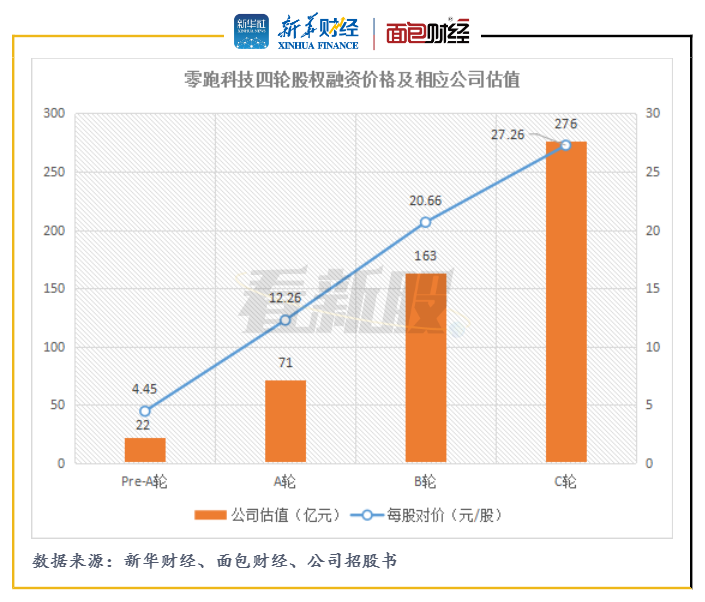 C輪融資完成后,零跑汽車股份數(shù)量增至10.12億股。按照C輪融資每股對價27.26元/股計算,零跑汽車當時估值約276億元。