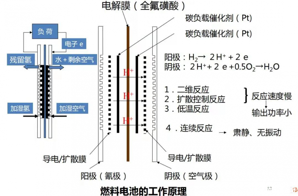 燃料電池則是一種將存在于燃料與氧化劑中的化學(xué)能直接轉(zhuǎn)化為電能的發(fā)電裝置。其技術(shù)路線更為復(fù)雜,涉及化學(xué)熱力學(xué)、電化學(xué)、電催化、材料科學(xué)、電力系統(tǒng)及自動控制等學(xué)科的有關(guān)理論。