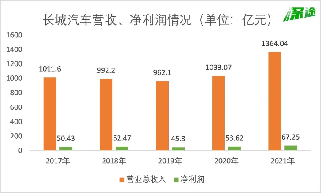 與千億營收形成鮮明對比的是,長城的凈利潤為67.25億元,凈利率4.9%。