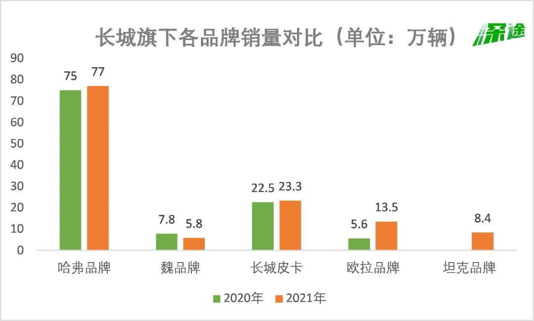 長城旗下?lián)碛形宕笳嚻放?,最近還在孵化一個全新品牌沙龍,并且發(fā)布了首款新車機甲龍。不算沙龍,剩余的幾大品牌各有各的困境。