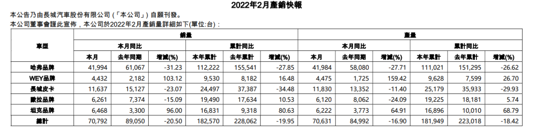 產(chǎn)能瓶頸以及原材料短缺,或成為制約長城2022年銷量的兩大障礙。