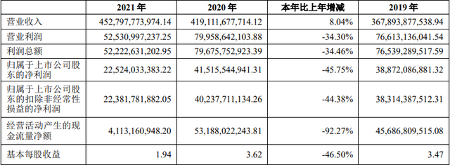 實際上,營收同比增長8%成為唯一的增長指標(biāo)。2021年萬科經(jīng)營活動產(chǎn)生的現(xiàn)金流凈額同比下滑92.27%,基本每股收益同比下滑46.5%。