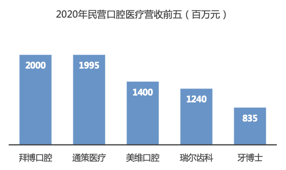 按2020年?duì)I收排名,牙博士是中國(guó)第五大民營(yíng)口腔集團(tuán)。而在華東地區(qū),牙博士營(yíng)收排名第二,僅落后于白馬股通策醫(yī)療。