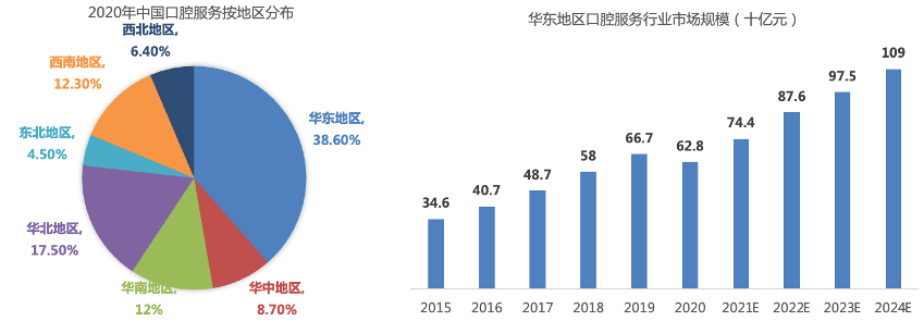 1.乘對(duì)了華東市場(chǎng)增長(zhǎng)的東風(fēng)。華東在全國(guó)口腔市場(chǎng)中占比第一,可能是最早實(shí)現(xiàn)“牙科自由”的區(qū)域,市場(chǎng)規(guī)模預(yù)估復(fù)合增長(zhǎng)為13%,略高于全國(guó)。可見(jiàn)江浙滬人民的口腔保健意識(shí)走在全國(guó)前面。未來(lái)5-8年,華東將是中國(guó)口腔市場(chǎng)最重要的區(qū)域,屬兵家必爭(zhēng)之地。牙博士布局較早,以蘇州為大本營(yíng),9年覆蓋華東7城,正好趕上了華東口腔消費(fèi)的增長(zhǎng)。